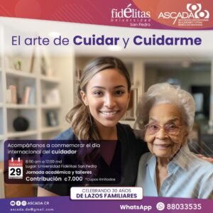 Este 29 de noviembre, en la Universidad Fidélitas sede San Pedro, se realizará una jornada especial dedicada a quienes todos los días sostienen, acompañan y brindan bienestar a personas mayores y a personas con necesidades de apoyo. El encuentro, de 8:00 a.m. a 12:00 m.d., está diseñado para fortalecer el bienestar integral de los cuidadores y ofrecerles herramientas prácticas desde una mirada gerontológica, emocional y científica.