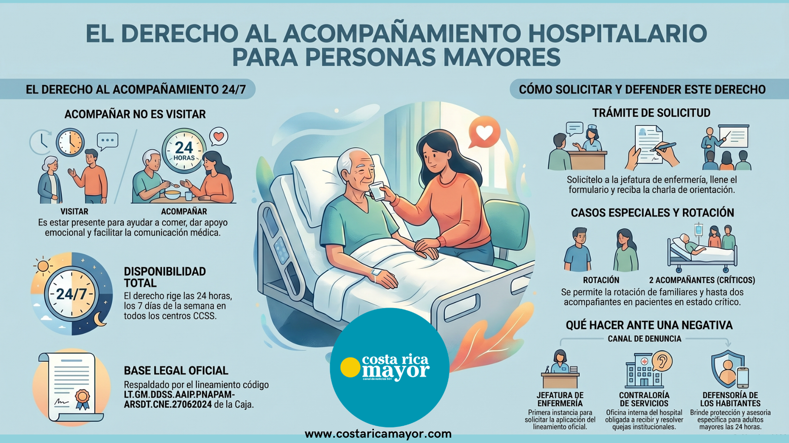 Este artículo es un pequeño aporte para cerrar esa brecha. Si usted tiene un papá, una mamá, un abuelo o una abuela, guarde esta información. Si conoce a un vecino con un familiar internado, cuéntele. Si trabaja en salud, recuérdele a las familias que el acompañamiento no es un favor que la Caja les hace: es un derecho que las personas mayores ganaron y que la institución reconoció.